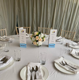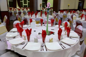 Extras:Full Table Service with Waiters available.Crockery & Cutlery, Tea Cups & Saucers, China Dinner Plates & Bowls and Glasses available.Table arrangement and Venue Decoration Service available.Round Tables and Chivari Chairs Hire Service available.