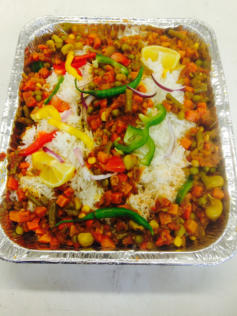 Starters:Fish Options:Amritsari Fish Pakora - Battered in gram flour with a mix of Indian herbs and spices. Masala Fish Fillets - Deep fried spicy fish fillets cooked with mixed Indian herbs. Chicken Options:Chicken Kebabs - made from chicken mince with a luxurious authentic Punjabi taste. Chilli Chicken Strips - marinated with a mix of spices and cut into strips. Chicken Samosa - Golden fried pastry with minced chicken, green peas and spices. Chicken Tikka - Boneless pieces of breast marinated in yogurt and cooked to perfection. Jeera Chicken Wings – Wings cooked with cumin seeds and mixed spices.Masala Chicken Wings – Spicy wings cooked with mixed Indian herbs.Methi Chicken – Boneless chicken cooked with fenugreek leaves, mixed herbs and spices.Lamb Options:Lamb Chops - Marinated with lemon juice, herbs and spices in a charcoal oven. Lamb Kebabs - Minced lamb cooked with authentic Punjabi spices in a charcoal oven. Lamb Samosa - Golden fried pastry stuffed with minced lamb, green peas and spices. Vegetarian Starter Options:Aloo Tikki & Chana – Potato cutlets in mixed spices with chickpeas in sauce.Chilli Paneer Tikka - Indian cheese marinated in yogurt with herbs and spices.Chilli Mogo Chips - Fried cassava cooked and topped with chilli and mixed spices. Garlic Mogo Chips - Fried cassava cooked in garlic and topped with mixed spices.Aloo Pakora – Deep fried potato fritters.Mixed Pakora – Deep fried mixed vegetable fritters. Paneer Tikka - Indian cheese marinated in yogurt with herbs and cooked in a clay oven.Pani Puri – Crispy pastry accompanied by chickpeas, potatoes, onions and spicy water.Papdi Chaat - Crushed chips served with chickpeas and potato mixed in spices topped with yoghurt, garnished with a mint and tamarind sauce, coriander, chaat masala and crispy sev. Vegetable Samosa - Golden fried pastry stuffed with potato, green peas and spices. Vegetable Spring Rolls - Golden fried pastry with carrots, green peas, onions and spices. Chilli Mushroom - Crispy Mushroom with chilli, garlic and soya sauce.Onion Bhaji - Crispy Onion fritters, served with mint sauce.Mains:Butter Chicken – Tandoori chicken cooked in rich tomato sauce with a special blend of traditional spices. Chicken Curry - Cubes of boneless chicken cooked with herbs and spices in a North Indian style sauce with chunky onions and peppers. Chicken Tikka Masala – Boneless pieces of chicken breast marinated in yogurt and mixed spices.Saag Chicken - A popular Punjabi spinach dish made up of a selection of green leaves cooked in Punjabi spices with succulent chicken breast pieces. Chicken Biryani - Basmati rice with boneless chicken cooked in mixed spices, topped with crispy fried onions. Keema Mattar – Beautifully minced lamb, cooked with peas, chopped tomatoes, ginger, onion, garlic, and green chilli. Lamb Bhuna – Tender pieces of boneless lamb cooked in traditional Punjabi style gravy.Lamb Curry – Cubes of boneless lamb cooked with herbs and spices in a North Indian style sauce with chunky onions and peppers. Saag Lamb - A popular Punjabi spinach dish made up of a selection of green leaves cooked in Punjabi spices with tender pieces of lamb. Lamb Biryani – Basmati rice cooked with tender lamb in mixed spices, topped with crispy fried onions. Vegetarian Mains Options:Achari Bengan Aloo – Spiced aubergine pureed and cooked with potatoes cooked in a smooth tomato sauce with Indian herbs and spices. Aloo Gobi Sabji – Cauliflower florets and chopped potatoes cooked in mixed spices.Bengan Bartha - Aubergine pureed and cooked with a blend of spices, onions, turmeric, and tomatoes finished with green peas. Bhindi Sabji - Pan fried okra cooked in a thick onion-based masala blended with our mixture of spices. Chana Masala - Boiled chickpeas prepared in a traditional tomato and onion gravy with a blend of spices. Daal Makhani - Whole black lentils, cooked to perfection over a slow fry, cooked with tomatoes and medium spices, finished with butter and cream. Daal Tarka - A blend of three lentils cooked with herbs, spices, prepared with cumin seeds and garlic. Methi Aloo – Potatoes cooked with fenugreek leaves and mixed herbs and spices.Mixed Vegetable Sabji – Cooked peppers, onions, tomatoes and peas with mixed spices.Shahi Mattar Paneer - Homemade Indian cheese cooked in a creamy sauce with butter and peas.Saag - A spinach dish made up of a selection of green leaves cooked in Punjabi spices. Saag Paneer - A spinach dish made up of a selection of green leaves cooked in spices with Indian cheese. Vegetable Biryani - Basmati rice cooked with mixed vegetables, spices, topped with crispy fried onions. Rice Options:Jeera Rice – Basmati rice cooked with cumin seeds.Pilau Rice - Saffron flavoured basmati rice. Plain Rice – Plain boiled basmati rice.Vegetable Rice – Basmati rice cooked with peas and onions.Yogurt Options:Boondi Raita – Crisp fried gram flour balls made in spiced yogurt. Cucumber Raita – Crisp fried gram flour balls made in spiced yogurt with added cucumber.Mixed Raita – Crisp fried gram flour balls made in spiced yogurt with added cucumber, tomatoes and onions.Plain Raita – Simple plain yogurt.Naan / Roti Options:Bhatura – Deep fried leavened bread made with all-purpose flour and saltNaan – Oven baked or deep fried flat breadPuri – Deep fried bread made from unleavened whole – wheat flour.Roti – Round flat bread made from whole wheat flour.Desserts:Gajar ka Halwa – Grated carrot pudding made from whole milk with added mixed nuts .Gulab Jamun – Deep fried waffle balls made of milk powder and flour soaked in sugar syrup.Ice Cream – Vanilla, Chocolate and Strawberry Kulfi – Indian ice cream in Pistachio and Milai flavours.Mixed Mitai – Indian dry sweets in many flavours.Ras Milai – Soft Indian cheese with saffron creamy syrup.English Food Options:Sandwich Platters – Cheese & Cucumber, Cheese & Pickle, Egg Mayonnaise, Ham & LettucePizza Parties – All types 